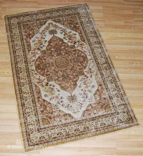 This rug looks brown in the photos but it is actually yellow - the company was very nice and said that we could return it but I thought it wasn't worth the hassle... if you are looking for a golden/yellow rug however this may be for you!