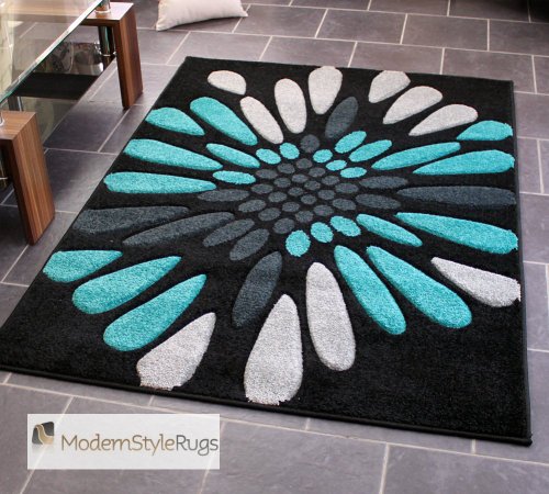 Black Grey and Teal Blue - Burst Splash Design - Very Modern Design Quality Rug - Ideal Mat For Carpet Or Laminite Flooring - Available In 2 Large Sizes, 120 x 170cm - (4ft x 5ft 7) Product Description