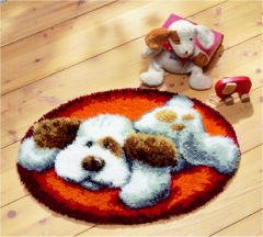 Contents; 1 large Hole handpainted canvas. I latch Hook Tool. Pack of Binding. Pre cut yarn packs. Instructions.