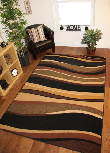 Description: This modern wave design rug is designed in shades of black, beige brown. Made from 100% Polypropylene this rug is stain resistant, easy to clean and will add a feeling of warmth to any room.