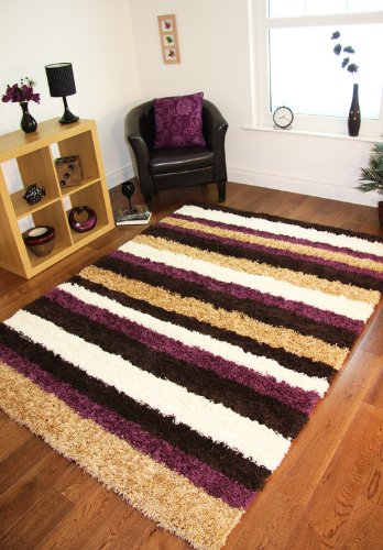 Helsinki 1953 Violet Aubergine Purple & Brown Stripe Lines Thick Shaggy Rug - 5 Sizes Product Description