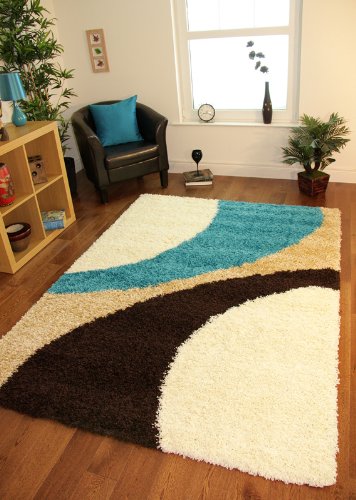 Helsinki 1960 Teal Blue, Brown & Cream Thick Pile Soft Next Style Shaggy Rugs - 5 Sizes Product Description