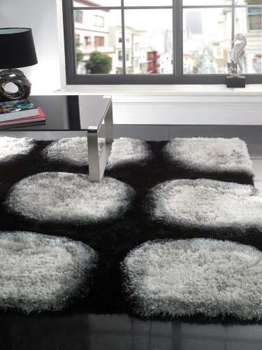Large Soft Silky Luxurious Shaggy Quality Rug in Black Silver White 120 x 170 cm (3'11 x 5'7") Carpet Product Description