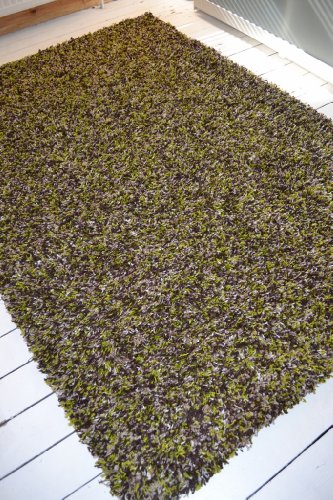 Lime Green Brown Ultima Shaggy rug.150x210cm Non Shedding Quality Product Description