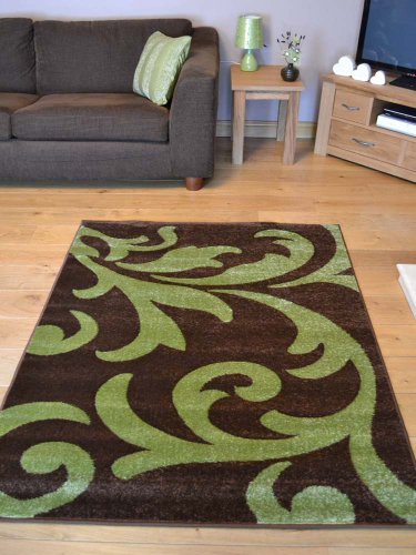 Modern Chocolate Brown and Green Hand Carved Rugs, Available in 4 Sizes (160cm x 220cm) Product Description
