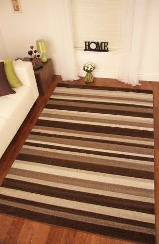 Napoli Brown Beige Modern Stripe Thick Carved Rugs 160x230cm (5'3" x 7'7") Product Description