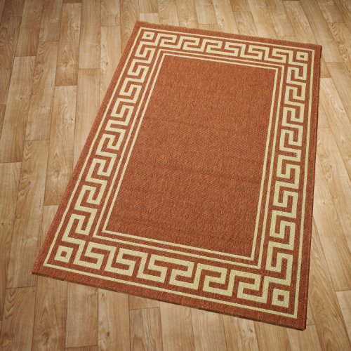 - Rust hard wearing, flat weave rug.100% Polypropylene rug. 160x230cm. Easily sponged and dries quickly.