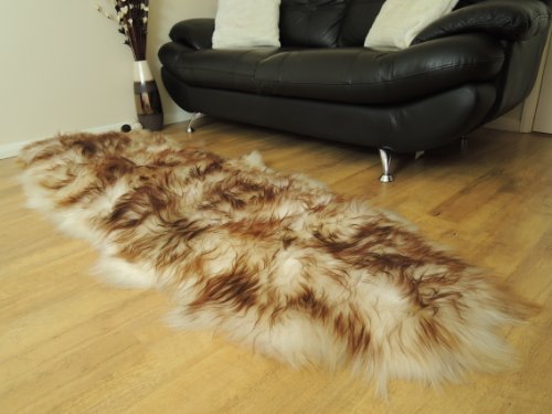 Description: 100% Natural Double Icelandic sheepskin rug - creamy white & dyed brown colour