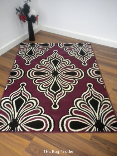 Paloma Handcarved Rug 9625M Purple Cream Black in 3 Sizes (160cm x 230cm) Product Description