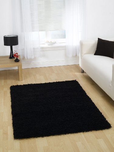 Plain Black Non Shedding Shaggy rug. 160x230cm Product Description