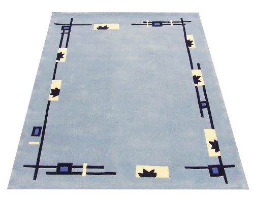 Premier Housewares Leaf Border Rug, 140 x 200 cm, Blue and Cream Product Description