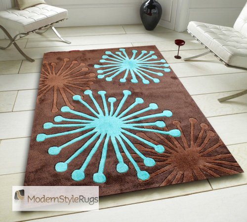 Starburst Chocolate Brown and Teal Blue Splash Design Rug, 160 x 230cm Product Description