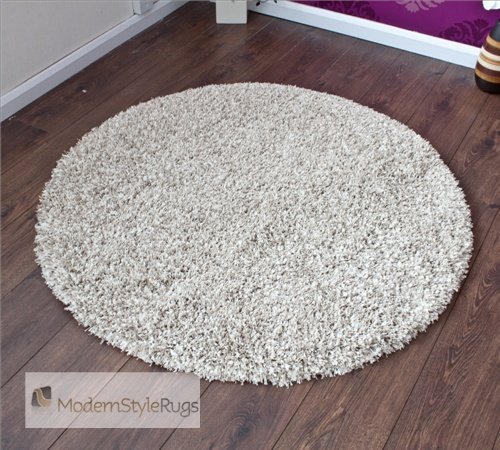 Very Thick Beige And Cream Chunky New Modern Floor Shaggy Circle Round Rug - AVAILABLE IN 3 SIZES, 160cm Circle (5ft 6'' Diameter) Product Description