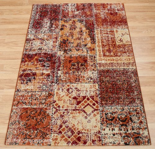 Woodstock Patchwork Modern Terracotta Rug 160x230cm (5'3''x7'6'') Product Description